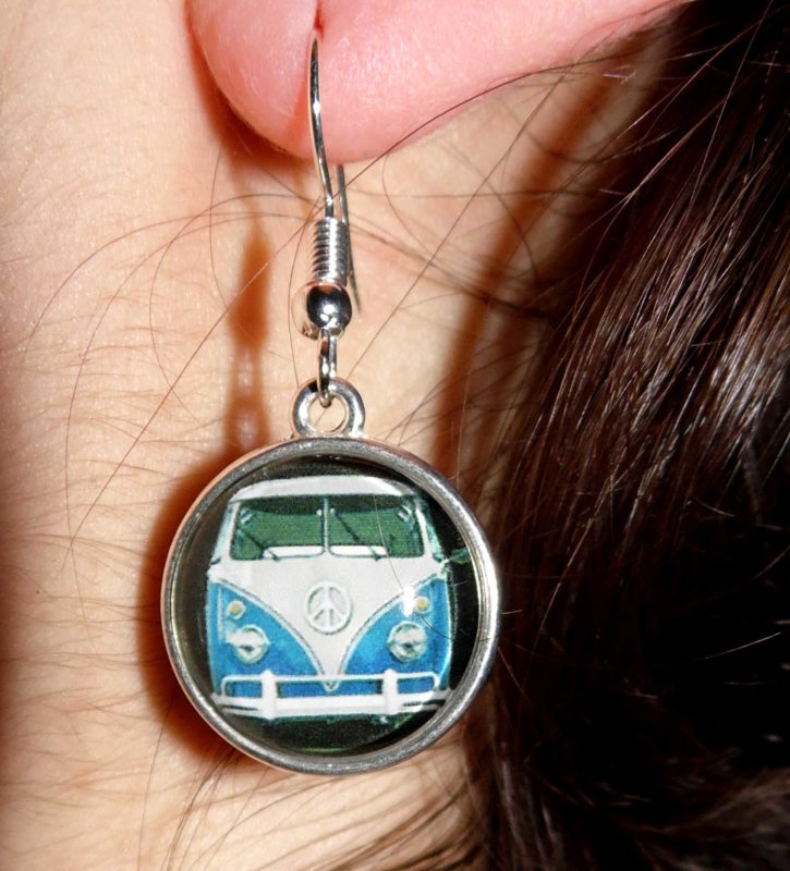 Paire de boucles d’oreille représentant un combi split.