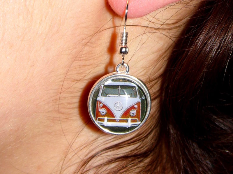Paire de boucles d’oreille représentant un combi split.