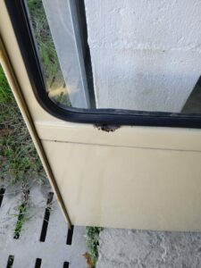Ses deux portes arrière, bien abîmées par le temps devaient être soit rénovées, soit remplacées.